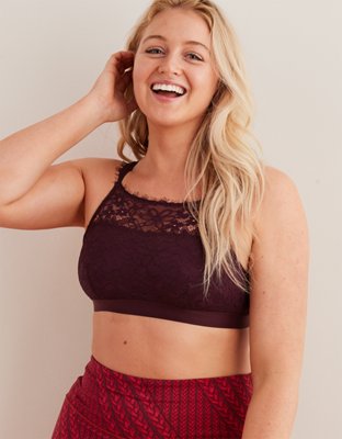 Aerie Holiday Lace High Neck Bralette Deep Plum Aerie For