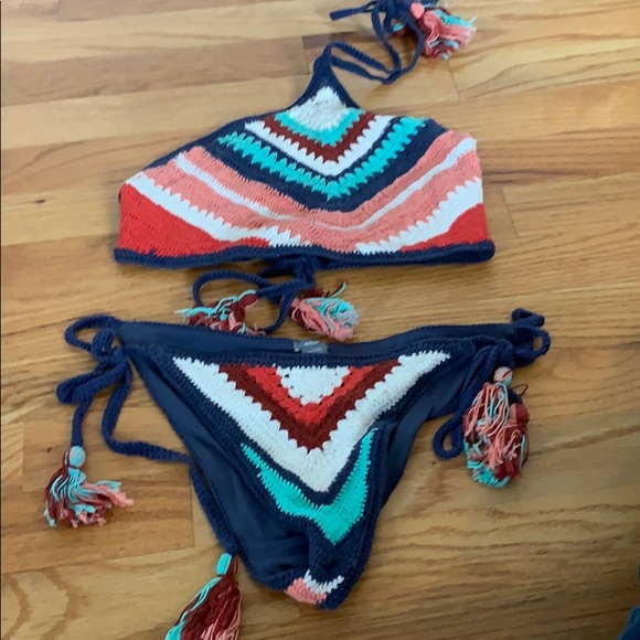 Aerie Swim Festival Crochet Halter Bikini In Navy M Poshmark