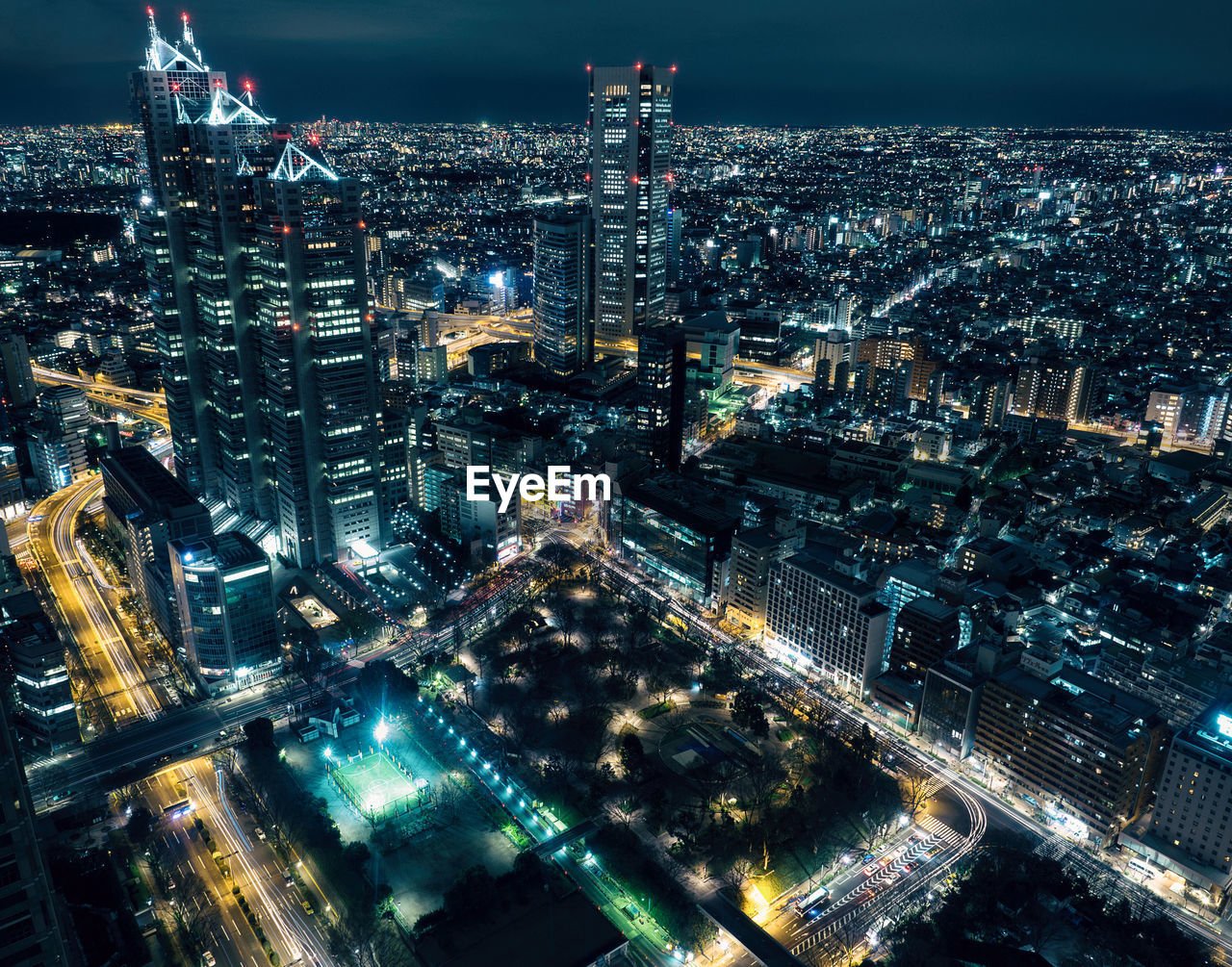 Aerial View Of A City At Night Shinjuku Park Tower Shinjuku Tokyo