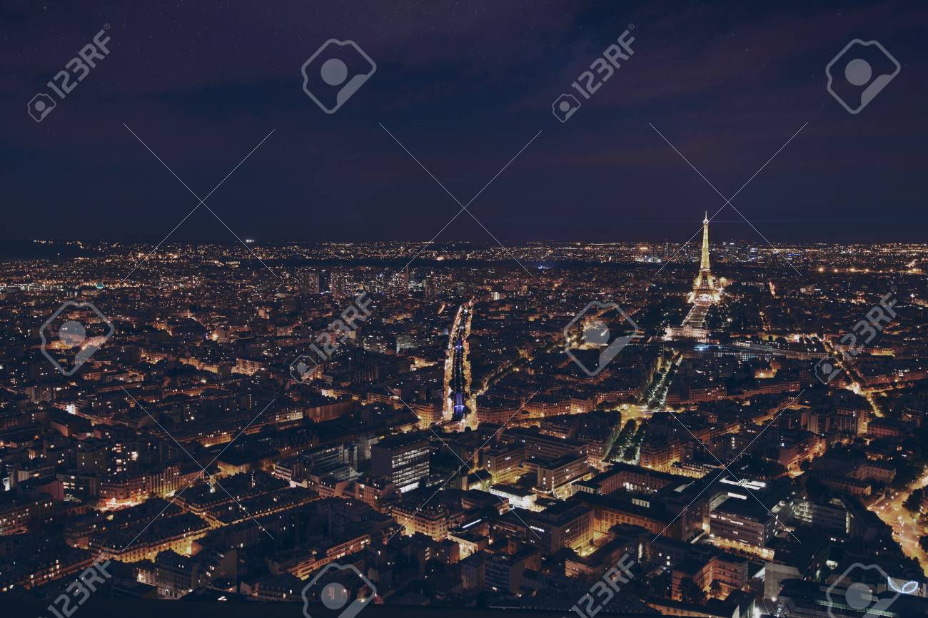 Paris France August 29 2015 Beautiful Night Panoramic Aerial
